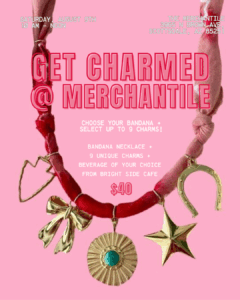 Choose your bandana and select up to 9 charms to customize your own bandana necklace. Each ticket includes a drink from Bright Side Cafe!