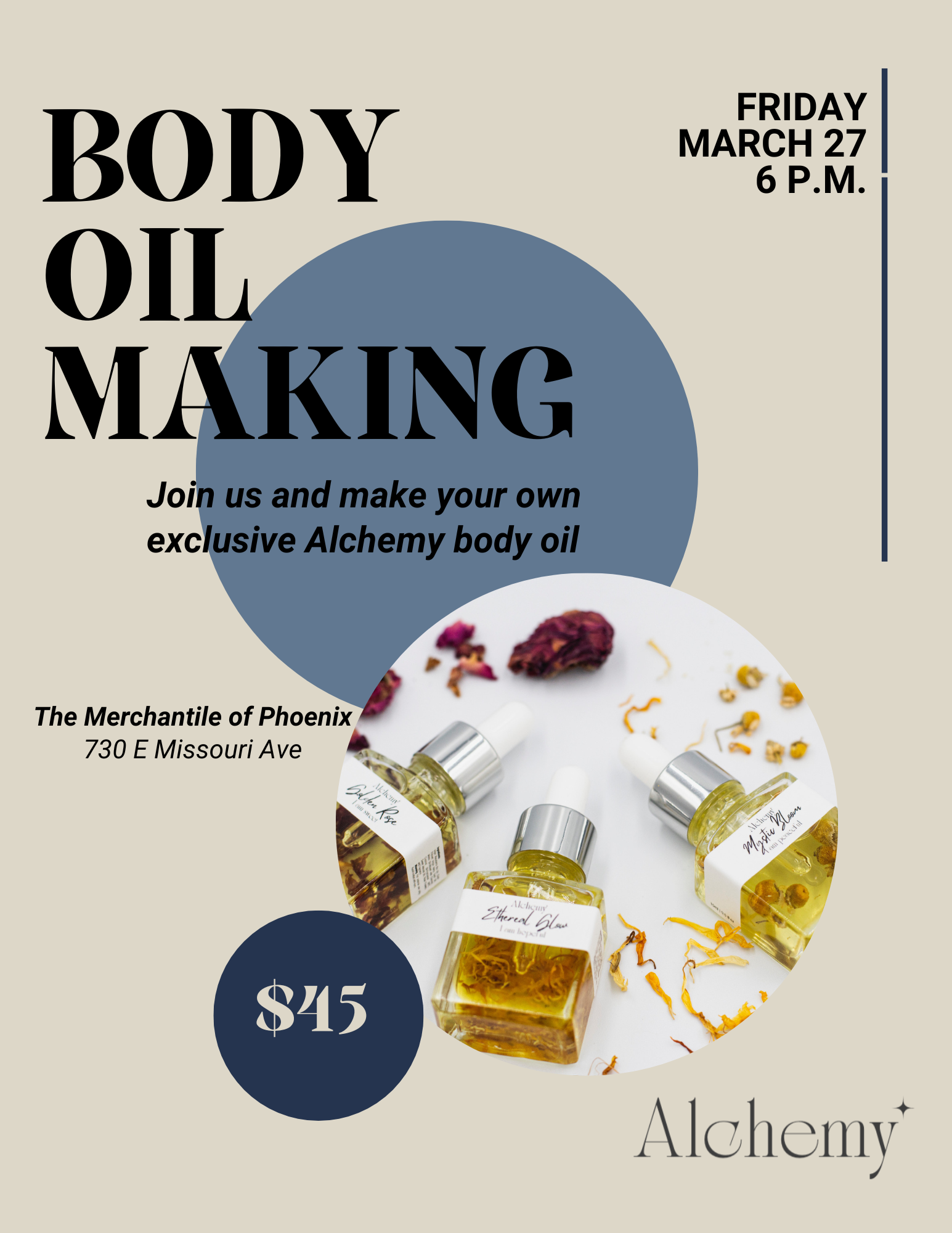 Join us at the Merchantile to create your own 100 mL (full-size) custom ritual body oil! Mix and match fragrances to your liking, and decide what else you’d like to add in, from flowers and crystals to shimmers! We have limited spots available so grab your ticket and invite your friends while they last!