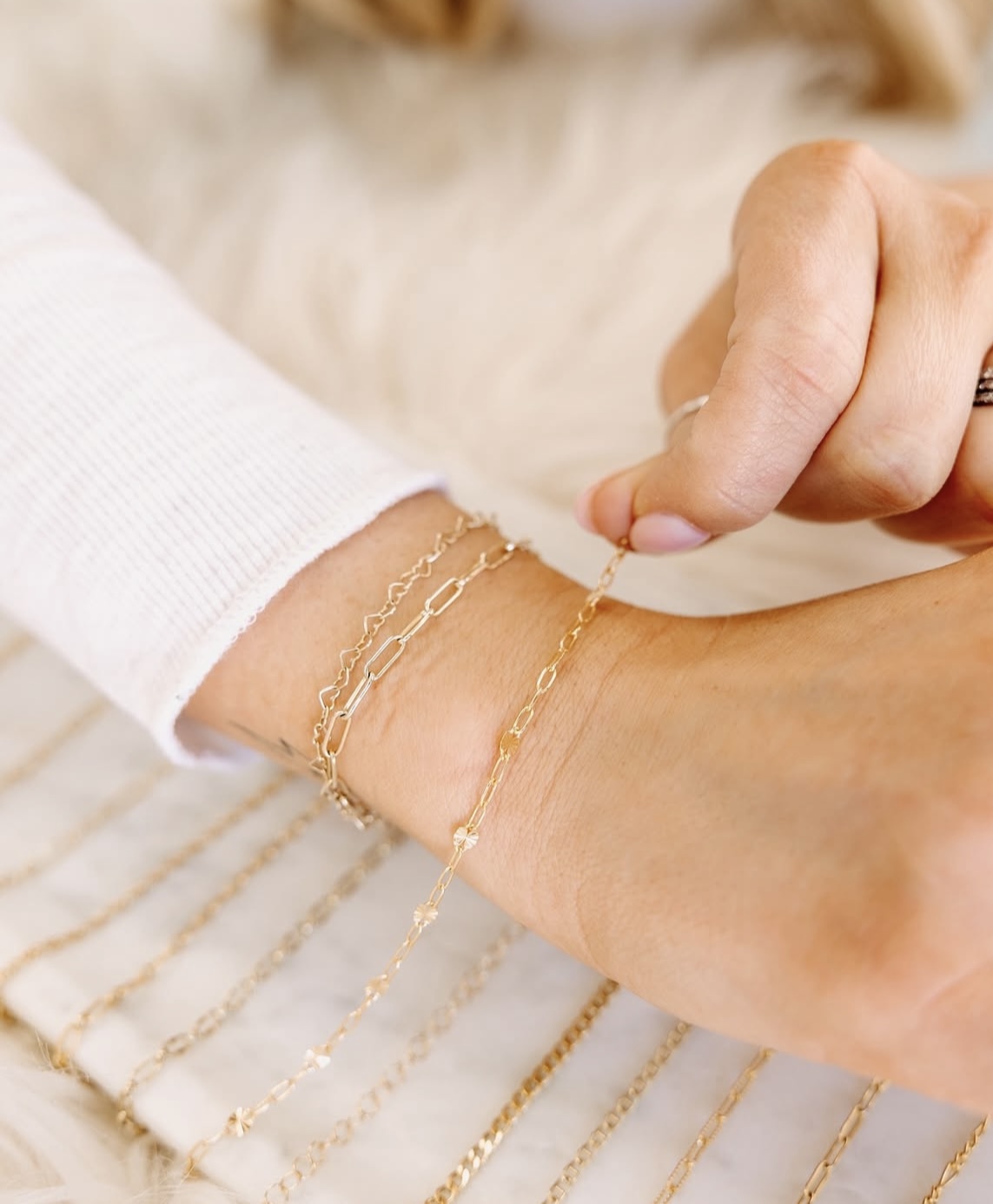 Select from a wide array of gold filled and silver chains and charms to design your own permanent bracelet, necklace, or anklet! Prices vary.