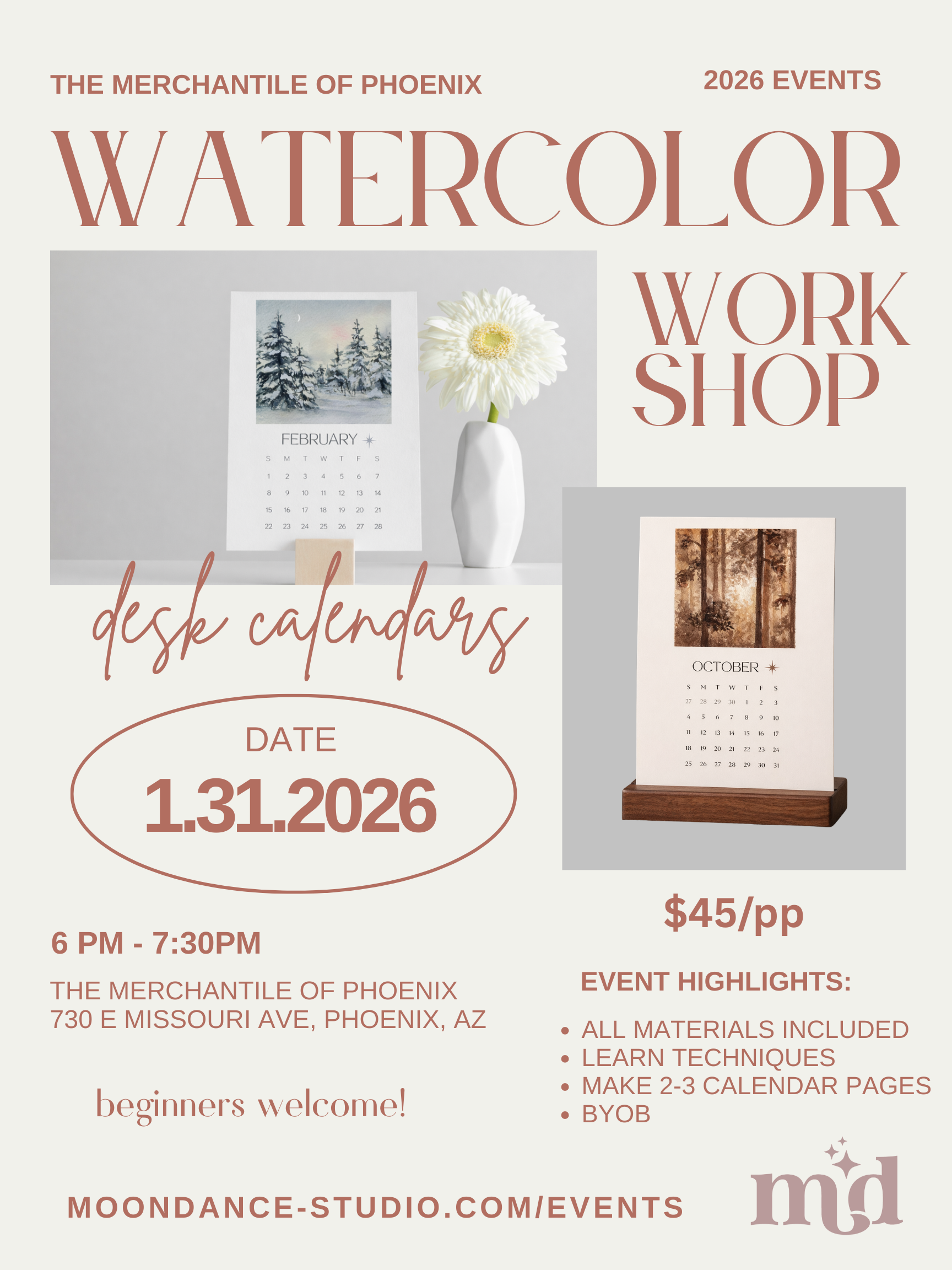 We’ll learn simple watercolor techniques and create a few calendar pages to start the year creatively.